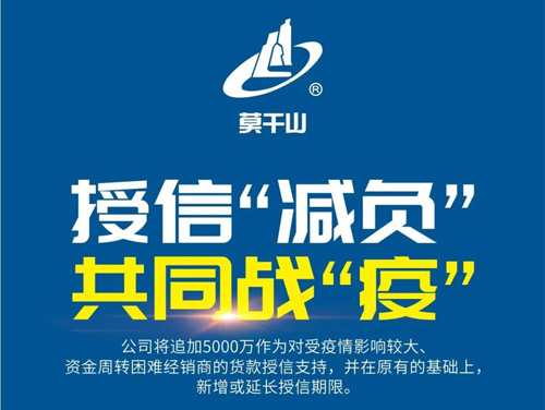 各位莫干山經(jīng)銷商家人,經(jīng)銷商是莫干山公司長久、穩(wěn)定發(fā)展的基石,公司總部一定會竭盡全力支持、助力全國經(jīng)銷商共渡難關(guān)。