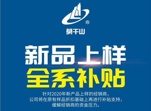 莫干山與各位經(jīng)銷商家人們同處一個商業(yè)共同體內(nèi),我們需要更大的商業(yè)智慧來共渡難關(guān),以“俱榮”求“共贏”。市場意味著活下去的生命力,為鋪墊疫后市場復(fù)蘇,針對2020年新產(chǎn)品上樣的經(jīng)銷商,公司將在原有樣品折扣基礎(chǔ)上再進(jìn)行補(bǔ)貼支持,緩解經(jīng)銷商的資金壓力。