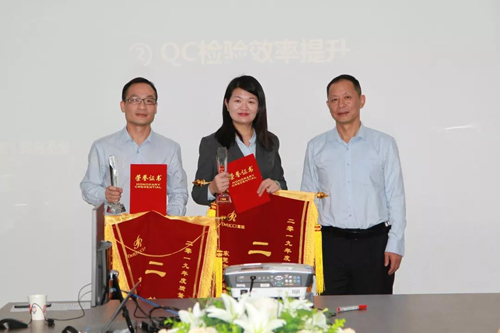 獲得慕思2019年度質(zhì)量改進二等獎的是質(zhì)量控制部和客戶服務部的“QC檢驗效率提升、配送安裝服務滿意度提升”項目,慕思供應鏈副總經(jīng)理許琳先生給其頒獎和勉勵。