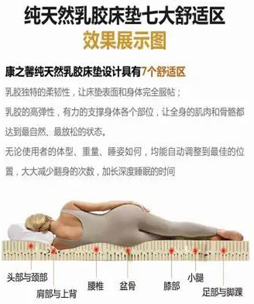 康之馨乳膠的分子結(jié)構(gòu)特殊,具有良好的舒適性、透氣性,抑制細(xì)菌及寄生蟲(chóng)的滋生;開(kāi)放式的乳膠多孔氣囊結(jié)構(gòu)體,使空氣在床墊中依然能自由流通,可分散睡眠中肌膚與慕思床墊接觸產(chǎn)生的熱氣、汗氣、保持睡眠中的舒適干爽。