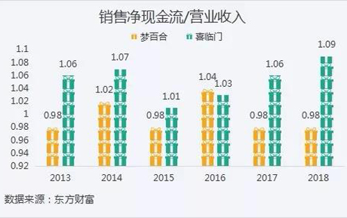 從銷售凈現(xiàn)金流上看,也是喜臨門更甚一籌。
