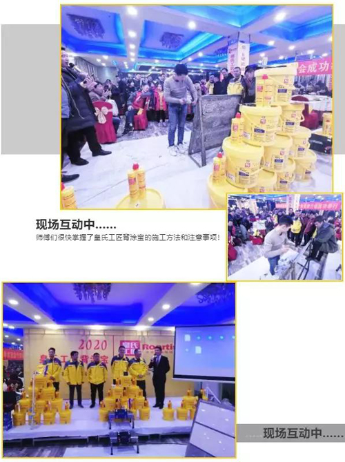 與此同時(shí)皇氏工匠近期連續(xù)成功舉辦了四場(chǎng)瓷磚背膠(背涂寶)推介會(huì)!每一場(chǎng)推介會(huì),都座無(wú)虛席,氣氛異;馃!推介會(huì)上皇氏工匠發(fā)表了未來(lái)皇氏工匠將全面解決瓷磚的粘貼問(wèn)題,為廣大用戶提供瓷磚粘貼一體化解決方案,也為瓷磚膠行業(yè)的規(guī)范與健康發(fā)展作出屬于自己的貢獻(xiàn)。如下圖:會(huì)場(chǎng)主持人在熱烈高漲的氛圍中,一邊講解施工方法和注意事項(xiàng),一邊與師傅們進(jìn)行互動(dòng)。