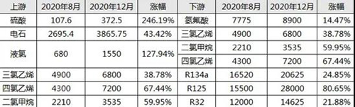 同周期下的原材料與制冷劑價格對比