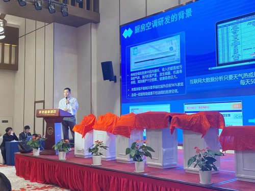 明頂廚房空調(diào)戰(zhàn)略合作伙伴海立電器工作人員介紹明頂廚房空調(diào)壓縮機的領(lǐng)先行業(yè)的核心原理。