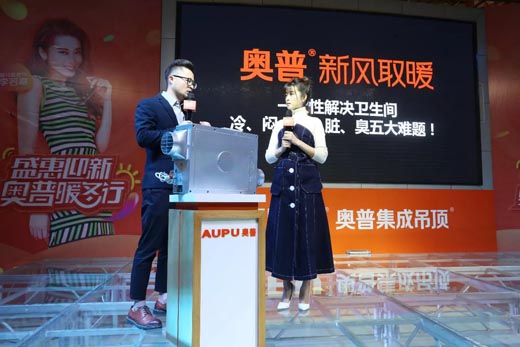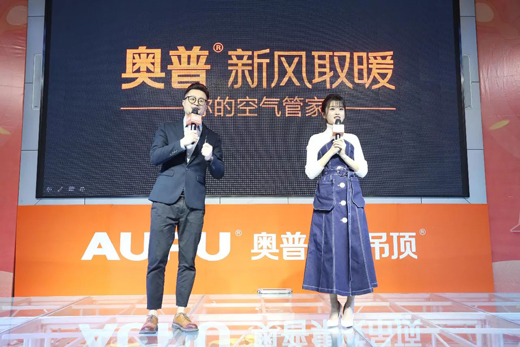 (奧普家居企劃總監(jiān)王斌和李若嘉分享奧普新風(fēng)取暖)
