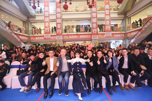 (李若嘉與奧普家居領(lǐng)導(dǎo)們合影)