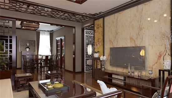 新中式風(fēng)格的構(gòu)成主要體現(xiàn)在傳統(tǒng)家具、裝飾品以及以黑、紅為主的裝飾色彩上。