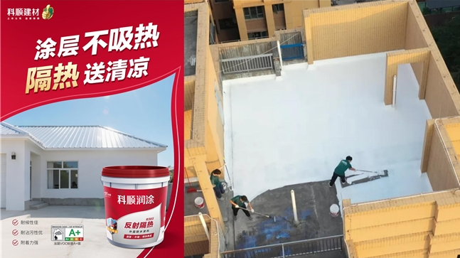3、科順潤(rùn)涂R303反射隔熱外露防水涂料:涂層不吸熱,隔熱送清涼