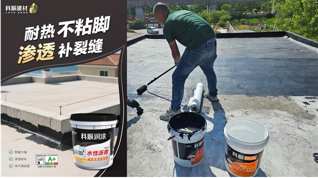 6、科順潤(rùn)涂R321水性瀝青防水涂料:外露不粘腳,滲透補(bǔ)裂縫