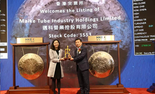 12月18日,邁科管業(yè)控股有限公司正式登錄香港聯(lián)交所主板市場發(fā)行上市,股票簡稱“邁科管業(yè)”,股票代碼1553.HK,成為2019年首家在港上市的濟南市制造業(yè)企業(yè),也是近10年來濟南市唯一一家在港上市的民營企業(yè)。
