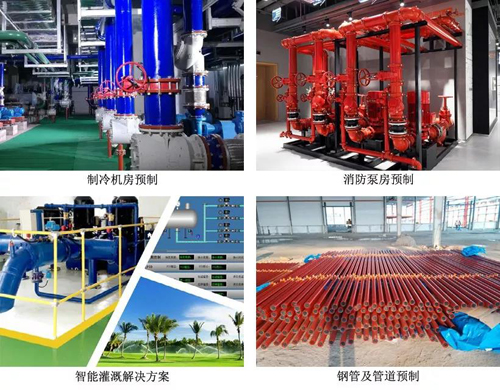 通過BIM建模技術,使用標準化的部品部件,模擬優(yōu)化制冷機房管線排布,根據(jù)高精度模型導出的預制加工圖紙,采用自動化設備進行流水化數(shù)控加工生產。該產品有效解決了傳統(tǒng)制冷機房施工方式材料浪費嚴重、安全隱患高、聲光污染大等問題。