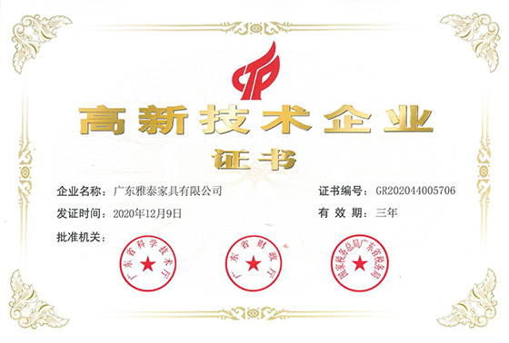根據(jù)國家《高新技術(shù)企業(yè)認定管理辦法》和《高新技術(shù)企業(yè)認定管理工作指引》的相關(guān)規(guī)定,廣東雅泰家具有限公司被認定為“高新技術(shù)企業(yè)”。近日,公司已經(jīng)收到了由廣東省科學技術(shù)廳、廣東省財政廳、國家稅務(wù)總局廣東省稅務(wù)局聯(lián)合頒發(fā)的“高新技術(shù)企業(yè)”認定證書,雅泰家具由此正式邁入國家高新技術(shù)企業(yè)行列。