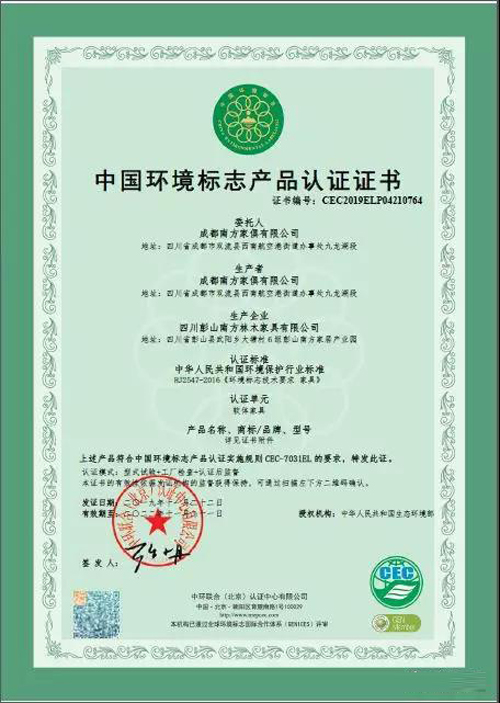 ▲人造板類家具——十環(huán)認(rèn)證書