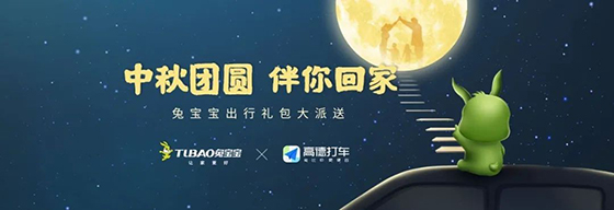 中秋正值闔家團(tuán)圓之際,在外打拼的人皆紛紛歸家共享團(tuán)圓時(shí)刻。就在剛剛過(guò)去的中秋佳節(jié),兔寶寶結(jié)合現(xiàn)下流行的公共出行方式,聯(lián)合高德地圖app,以優(yōu)惠派發(fā)的方式,助力千萬(wàn)中秋“在路人”回家團(tuán)圓。
