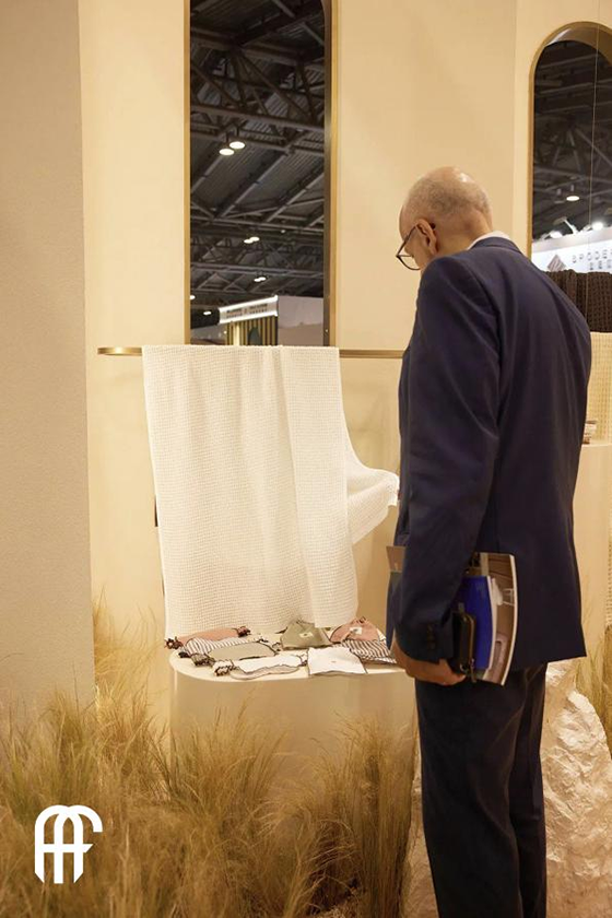 AMAZE FIBER美絡(luò)工坊“柔織沙影”設(shè)計(jì)空間,抽象化的流沙影像,多重感官的沉浸體驗(yàn),以沙漠、白石、柔性織物、隨性飛草詮釋自然與極簡概念。靈動(dòng)視覺元素與靜態(tài)交錯(cuò),折射出品牌關(guān)注可持續(xù)面料材質(zhì)與設(shè)計(jì)創(chuàng)新理念。