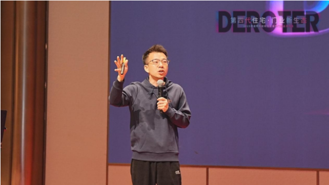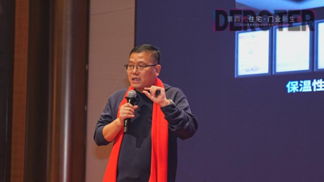 戴總以感恩十年同行開場(chǎng),強(qiáng)調(diào)品牌憑借高端定位與技術(shù)壁壘已成為行業(yè)標(biāo)桿,同時(shí)直面當(dāng)前行業(yè)同質(zhì)化競(jìng)爭與消費(fèi)者痛點(diǎn),提出從"賣門"向"高端居家安全解決方案"轉(zhuǎn)型的戰(zhàn)略方向,并錨定第四代住宅新戰(zhàn)場(chǎng)。重點(diǎn)發(fā)布新品德諾特——低能耗智慧裝甲系統(tǒng)門,其融合航天級(jí)泡沫玻璃材料實(shí)現(xiàn)保溫性能提升300%,隔音效果達(dá)Rw≥40dB且比普通門提升40%,同時(shí)具備8級(jí)氣密性與即裝即住的環(huán)保特性。通過AI智能機(jī)器人實(shí)現(xiàn)全屋智能互聯(lián),與此同時(shí),戴總宣布總部將提供抖音爆款素材庫、銷售白皮書等全套營銷支持,最終以"破界新生·共贏未來"為號(hào)召,通過終端爆款產(chǎn)品與立體化賦能體系,引領(lǐng)經(jīng)銷商共同開拓門業(yè)新生態(tài)。