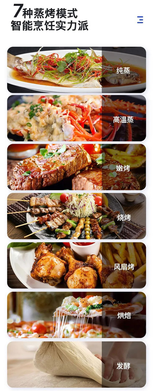 正所謂工欲善其事,必先利其器,好飯離不開好廚電的助力。一臺蒸烤箱,一機多用,早餐包子、午餐蒸魚、晚餐燒烤、夜宵披薩等等美味都可輕松獲得。金利集成灶中的蒸烤箱可以實現30℃-210℃寬域控溫,全腔加熱模式,打造專業(yè)烘焙效果;擁有60L的超大容積,可以滿足蒸烤一體,快速做出一大桌子的美食,讓聚會不再因等待而掃興。