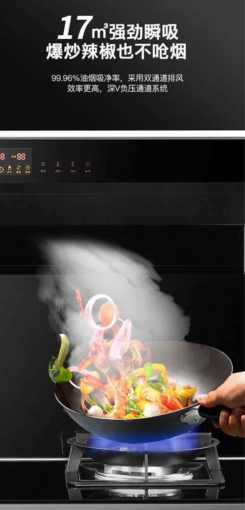 金利集成灶給你無煙的廚房,輕松的操作體驗,沒有清理帶來的負擔,更有全面的安全保障。