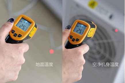 而溫度控制上似乎是空氣凈化器的強(qiáng)項(xiàng),雖然有風(fēng)機(jī)電機(jī)一直在運(yùn)轉(zhuǎn),但由于始終在吹室內(nèi)風(fēng),所以溫度幾乎沒有任何明顯升溫,實(shí)測室內(nèi)地面溫度為25.1℃,機(jī)身后側(cè)風(fēng)機(jī)位置也僅僅只有25.7℃,發(fā)熱現(xiàn)象完全可以忽略不計(jì)。