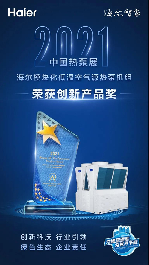 海爾中央空調(diào)積極踐行碳中和戰(zhàn)略,不斷進行技術(shù)突破、產(chǎn)品升級、方案升級,本次2021中國熱泵展,海爾模塊化低溫空氣源熱泵機組榮獲創(chuàng)新產(chǎn)品獎,創(chuàng)新科技,樹立行業(yè)風(fēng)向標。