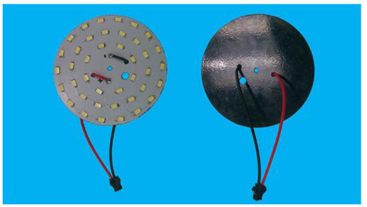 圖二是20W石墨烯LED光引擎,配合20W LED的應(yīng)用范圍,采用PLCC型LED光源,直接插電使用就可以讓光源溫度保持在安全的80?C標(biāo)準(zhǔn)內(nèi),外部機構(gòu)件可以由業(yè)者任意發(fā)揮。