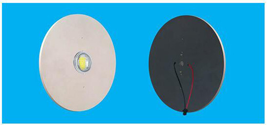 圖三是100W石墨烯LED光引擎,配合大功率燈具使用場所,采用COB型LED光源,在載板背后噴涂石墨烯納米碳薄膜,就可以不須散熱鰭片,讓光源溫度保持在安全的80?C標(biāo)準(zhǔn)內(nèi),因此可以讓燈具設(shè)計者任意發(fā)揮創(chuàng)意,而不用擔(dān)心機構(gòu)件影響散熱。