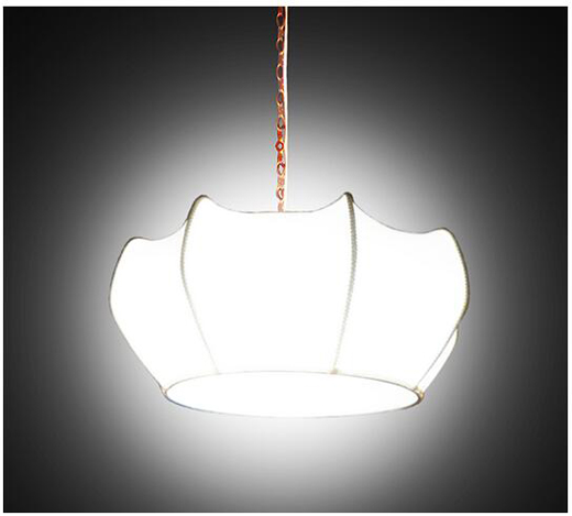 圖四是石墨烯LED藝術(shù)燈之【王冠】,盧鴻智博士將石墨烯LED光引擎直接運用在藝術(shù)燈上,因為沒有了散熱鰭片影響美觀,而且光引擎已可直接散熱,因此機構(gòu)件可以使用不能散熱的藝術(shù)燈罩,也不會有任何影響,可以將LED藝術(shù)燈化,帶來LED燈的新革命。