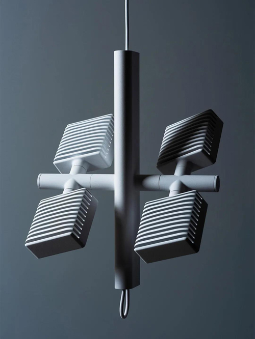 只有吊燈有四個(gè)單獨(dú)的頭,例如Dorval 01,它們沿著長鋁桿隔開。