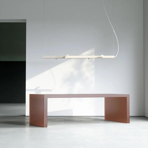 它水平懸掛在天花板上,可用于照亮辦公室中的長餐桌或書桌。