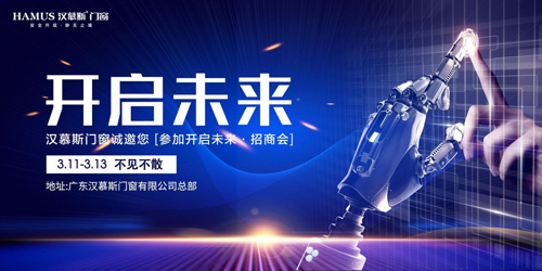 3月11-13日,漢慕斯門窗將在公司總部,舉辦“開啟未來”2021首場招商會,總經(jīng)理阮明振將頒布全面優(yōu)惠的政策支持,與全國經(jīng)銷商攜手同心、共創(chuàng)未來!