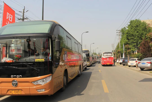 ▲來(lái)自全國(guó)各地的大巴車匯聚陽(yáng)光林森總部