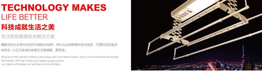 嘉興市晴家智能家居有限公司,致力于為追求品位生活的人們提供創(chuàng)新科技、人性化設(shè)計(jì)的智能晾衣生活,以改善人們的晾衣體驗(yàn)。晴家專注于智能晾衣機(jī)產(chǎn)品的研發(fā)、生產(chǎn)與行銷,成為中國(guó)晾衣機(jī)行業(yè)的專業(yè)供應(yīng)商,立志于推動(dòng)家居智能化的進(jìn)程。