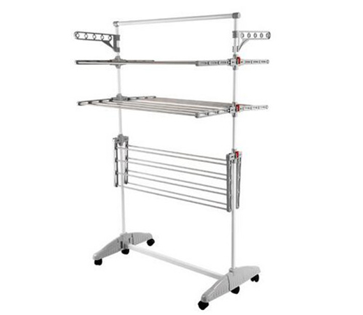 落地式晾衣架非常的實用方便、直接放在地面上就好,不用時還可以收起來,它是不銹鋼材質(zhì),不管放在室內(nèi)還是室外,都可以長久使用,不受損傷。