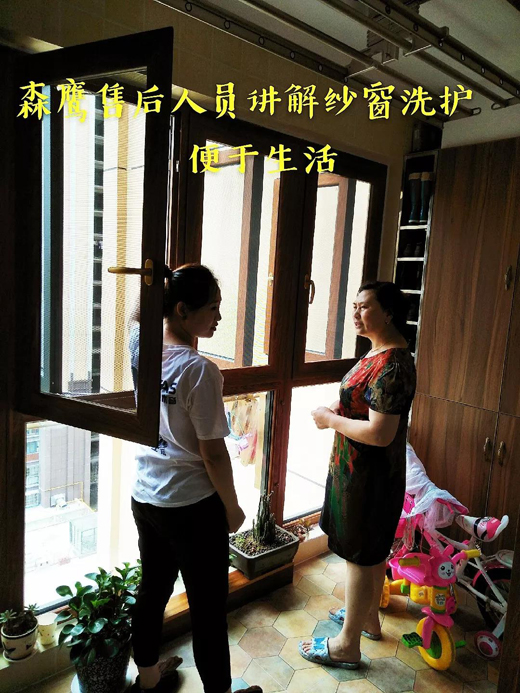 羅先生家阿姨熱情招待我們,森鷹售后人員也耐心講解紗窗玻璃如何清洗方便等相關知識,阿姨對我們此次到來非常高興!