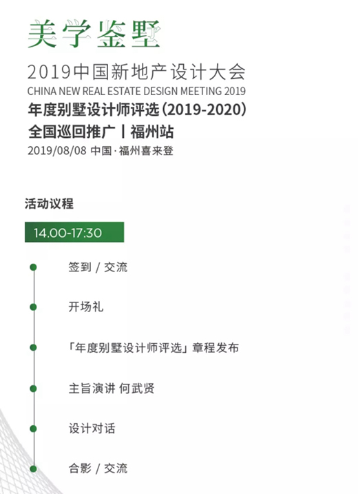 “2019年度別墅設(shè)計師評選”,巡回推廣·福州站,8月8日,福州中庚喜來登酒店,即將來襲,敬請期待!