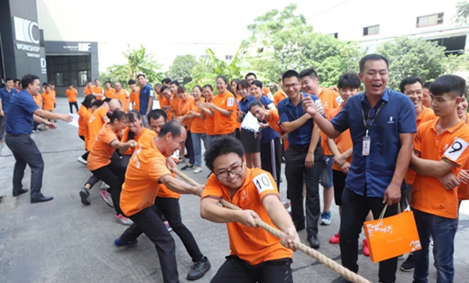 在拓展活動(dòng)中,全體百利瑪人在主持的指導(dǎo)下分為“拔河”、“記憶對(duì)對(duì)碰”、“急速60秒”、“大力士”、“坐地起身”、“傳遞呼啦圈”等集趣味性、挑戰(zhàn)性和團(tuán)隊(duì)協(xié)作性于一體的活動(dòng)。