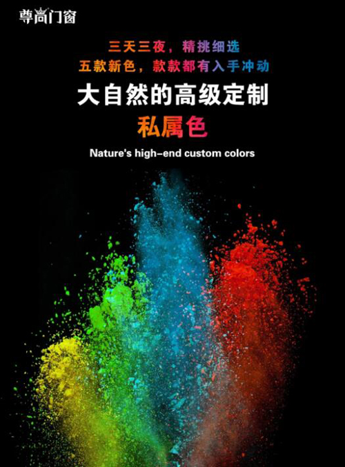 色彩是畫家思想的提現(xiàn),家居生活中色彩的搭配選擇是家居藝術(shù)的表征,世界上,最高端的色系都是自然的饋贈。近期,尊尚門窗色系庫新增了5款高端私屬色。如高海拔地區(qū)的極光之色,蒼穹下的星耀,星空灰等色系都來自大自然的藝術(shù)色盤中。