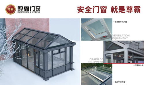 尊霸陽光房的骨架采用壁厚堅實、外觀大方的主受力型材剛性設計,可根據(jù)家居裝修設計的不同風格,選擇相搭配的人字形、斜頂形、四方形、多角形、異形等各種陽光房造型設計,產(chǎn)生不同的視覺效果,同時滿足裝飾效果和門窗強度及耐老化性能的多種要求。其采用三層中空夾膠鋼化玻璃,保溫隔熱和安全性能極高,防雨水、抗風壓、高氣密性極大地提高門窗使用的安全性。在細節(jié)上,尊霸陽光房配套隔熱結(jié)構(gòu)設計、排水設計、通風設計、受力結(jié)構(gòu)設計,為用戶帶來更加現(xiàn)代的高品質(zhì)使用體驗。