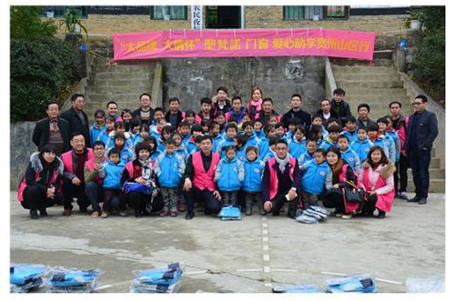 圣梵諾門窗運營總監(jiān)蔡松坤、銷售總監(jiān)唐勇以及各地的加盟商代表一行16人,不遠(yuǎn)千里,愛心黔行,為貴州大山深處的山區(qū)小朋友送去了春天般的溫暖。