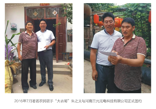 除了在遠(yuǎn)紅外輻熱技術(shù)上的領(lǐng)先姿態(tài),三元光電在品牌宣傳上也不遺余力。2016年7月,著名農(nóng)民歌手“大衣哥”朱之文正式與河南三元光電科技有限公司簽約,成為三元光電·遠(yuǎn)紅外品牌代言人。作為新型電熱行業(yè)的開創(chuàng)者,三元光電始終堅持“環(huán)保節(jié)能,溫暖民生”的核心理念。而朱之文大哥“踏實、務(wù)實、正派”的形象正好符合三元光電·遠(yuǎn)紅外產(chǎn)品對老百姓的真誠服務(wù)。