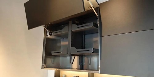 整體廚房的技術(shù)革新還體現(xiàn)在廚電智能化,蒸烤箱、洗碗機(jī)、消毒柜等嵌入式電器與廚柜統(tǒng)一契合,還有電動(dòng)上掀門,升降插座,電動(dòng)升降拉籃等廚房黑科技,讓烹飪操作收放自如,得心應(yīng)手。