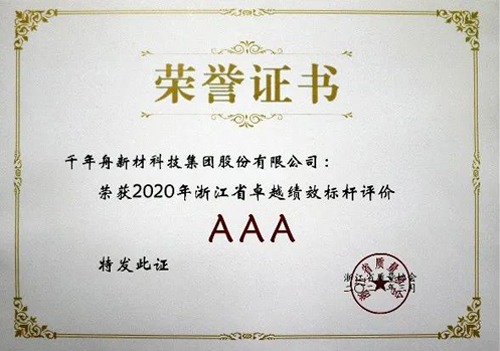 經(jīng)過現(xiàn)場(chǎng)評(píng)審和綜合評(píng)價(jià),2021年3月,浙江省質(zhì)量協(xié)會(huì)授予千年舟集團(tuán) “浙江省卓越績效標(biāo)桿(AAA)企業(yè)”榮譽(yù)稱號(hào),是對(duì)公司在全面實(shí)施卓越績效管理模式過程中,始終關(guān)注組織發(fā)展的綜合績效,關(guān)注五方利益的肯定,是卓越績效模式深入推行的新成果、新成效。