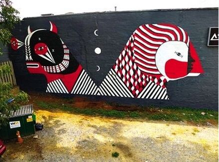 16歲的時候,拉斐爾·薩迦拉(Raphael Sagarra)就在他圣保羅家的附近開始進行涂鴉創(chuàng)作。他使用“Finok”這個名字進行創(chuàng)作,現(xiàn)年將近30歲的他,逐漸形成了他標簽性的風格:顏色鮮艷的卡通式人物形象。他的作品不僅使用鮮艷的顏色,還充滿了各種格子造型。
