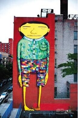 巴西涂鴉藝術(shù)家二人組潘爾多福兄弟,更多被人提及的名字是“雙胞胎組合”(Os Gêmeos),現(xiàn)在早已經(jīng)成為最受世界矚目的涂鴉藝術(shù)家之一。他們的涂鴉作品,以隱喻或諷刺的手法,反映了巴西社會和政治環(huán)境。這對雙胞胎兄弟從孩童時代起就一起作畫,迄今為止,二人從未單獨完成任何作品。1985年,二人首次在他們居住的圣保羅街區(qū)里接觸到嘻哈文化:一些鄰居常常在家門口的人行道上通宵練習街舞。作為孩童,他們很快愛上了這種文化。12歲那年,兩個孩子就開始在圣保羅街頭涂鴉,而使用的材料則包羅萬象,一切他們能使用的東西,如車漆、廣告色、用剩了的噴漆罐等都成為他們的繪畫材料,創(chuàng)作主題也多種多樣。在美國嘻哈文化的影響之外,二人很早開始就決定要形成自己的藝術(shù)語言和風格。他們筆下的形象,是巴西民間文化中獨具魅力的人物;而涂鴉作品則往往具有很強的敘事性,以看似滑稽荒謬的人物和少量的配圖文字,講述或幽默、或諷刺的故事。這一切都來源于他們在巴西成長和生活的經(jīng)歷,“恨與愛、生存與滅亡、少得可憐的薪水、法外之地、虛榮、自我、嫉妒、相互利用、街上的火堆、向警察撒謊、關(guān)愛家人、做事情的不計后果、用舊衣服蘸著顏料作畫、光著上身爬梯子、利用城市所有的丑惡、知曉我們還在霧里飛翔、積水中的紙船……”作為巴西人,潘爾多福兄弟很自豪,“我們的藝術(shù)就像是大海中漂搖的小舟,所有可能和驚奇都會發(fā)生。”