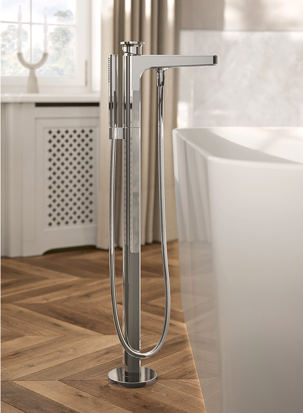 Vea | 唯雅系列的設(shè)計靈感來自高級定制香水瓶的精巧外觀,化繁為簡,從線條到切割折角,從幾何力學到視覺美學,每一處細節(jié)訴說精雕細琢的工藝。香水瓶蓋造型化為別出心裁的出水控制旋鈕,旋鈕頂部還可根據(jù)五金表面顏色處理選配陶瓷嵌片,使之與衛(wèi)浴陶瓷和諧相契。無論單色設(shè)計,或鍍鉻表面搭配潤白瓷嵌片,抑或啞光黑表面結(jié)合雅墨黑陶瓷嵌片,皆為衛(wèi)浴設(shè)計打開煥然一新的想象空間。藉由簡約造型與經(jīng)典元素的交融,Vea | 唯雅系列為現(xiàn)代衛(wèi)浴設(shè)計提供了理想之選。