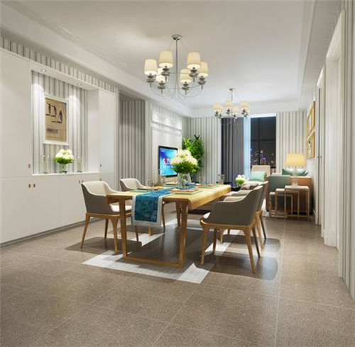地面采用素凈的佛諾倫莎釉面磚為主磚,并用灰色釉面磚進(jìn)行沙發(fā)、餐廳、過(guò)道等區(qū)域的導(dǎo)邊;墻面不用任何色彩處理,留下原始的白色,經(jīng)過(guò)軟裝上的色彩勾畫(huà),家居造型上搭配,讓整體空間不擁堵,不累贅。這樣的手法多用于小型空間。