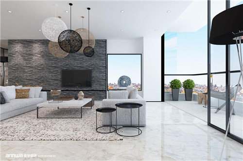 人人爭說“九寨看水、光霧看山,山水不全看、不算到四川”。也有人說“上有天堂,下有蘇杭”。這些美如畫卷的山水,躍然紙上,更是在瓷磚中悠然展現(xiàn)?偸菐е唤z文人的憂愁和煙雨的迷蒙,那樣的溫婉美麗,那樣的撲朔迷離。大理石瓷磚,集合了中國山水畫的大潑墨寫意,紋路如山川相繚,郁乎蒼蒼的隱隱群山,正是這種詩意山水的真實寫照。