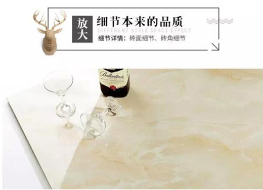 富田金剛石,徹底解決了傳統(tǒng)全拋釉的平整度問題。完全不同超平釉,具備超高光亮,超高質(zhì)密度,超平平整度,高耐磨度,花色新穎等諸多優(yōu)點(diǎn),主要克服了拋光磚的花色單一,全拋釉的水波紋、龜背邊,平整度不夠,防污性能差,花色層次感不強(qiáng)等缺點(diǎn);克服了微晶石容易磨損的缺陷!