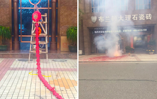 2月27日正逢正月初七,布蘭頓大理石瓷磚迎來了2018年第一個(gè)工作日。一早,伴隨著鞭炮聲的響起,迎來了2018年的新篇章。公司上下呈現(xiàn)一片歡天喜地,熱鬧非凡,預(yù)示著布蘭頓大理石瓷磚必將在新的一年里紅紅火火,大吉大利!