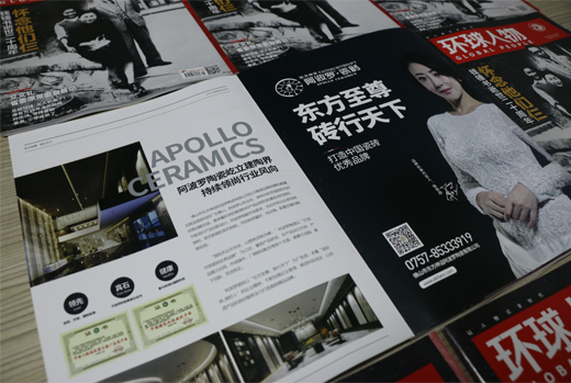 翻開東方神話阿波羅的歷史新篇,斬獲“中國十大陶瓷品牌”、登陸央視四大頻道進行品牌展播、攜手多家視頻網(wǎng)站與網(wǎng)絡(luò)媒體進行全年立體化的品牌宣傳等眾多榮譽成就赫然被刻于豐碑之上。如今,阿波羅瓷磚又迎來了發(fā)展新佳績,那便是在我國發(fā)行量最大、最具權(quán)威性和影響力的綜合時政類期刊《環(huán)球人物》上刊登專題報道,以文字的形式向世人展現(xiàn)阿波羅瓷磚的無限魅力!